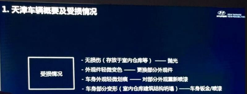 汽车头条APP随后将这一情况同进口现代汽车中国总代理——现代汽车(中国)投资有限公司(简称"现代中国")核实,一位不愿具名的内部人士对头条君表示,这1000多辆车存放的位置距离爆炸点在三公里以上,不在爆炸范围内。