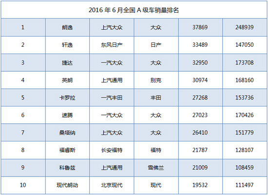 3月A级车:朗逸刷新纪录 自主轿车销量走低