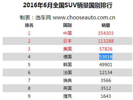 选车网数据显示,6月,日系SUV销售113288辆,占比达17.92%,排在自主之后。美系SUV 6月销售57826辆,占比达9.14%,排名第三。德国SUV销售53018辆,占比达8.38%,位居第四。(中国经济网记者 郭涛)