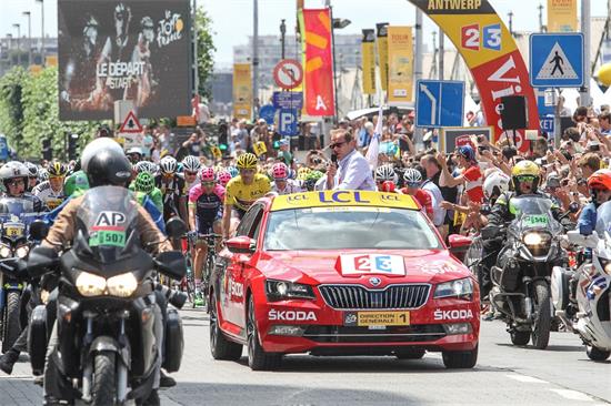斯柯达速派成为比赛的“红车”领航骑手队伍,成为环法自行车赛主席克里斯蒂安·普吕多姆(Christian Prudhomme)的移动指挥中心