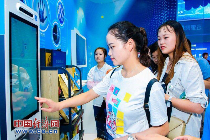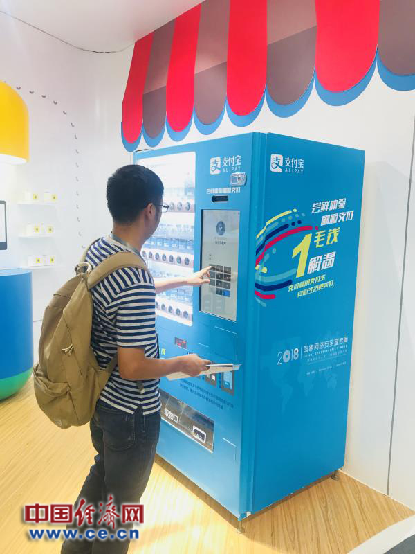 图为观众体验安全快捷的购物方式。经济日报-中国经济网记者王婉莹/摄