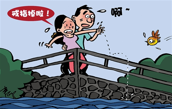 一部《泰坦尼克号》赚取了全球无数男女的眼泪,这眼泪汇成河,河里满是一对对爱侣在泛舟,男女们都像杰克和露丝一样站在船头前后相叠,双手叉开,双眼微闭,任风儿将自己的头发搞得上下翻飞……成都这对情侣,也如此这般,把都江堰权作大西洋,将河堤拟为豪华游轮,然情到深处百般舞弄之际,定情戒指“海洋之心”不慎掉入河中。为捞定情圣物,“杰克”奋勇跳进河里……幸好旁边“群众演员”发现,警察赶到,将大情圣捞起。