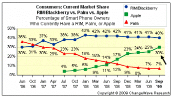 ChangeWave调查通常被认为不具代表性——它们确实如此。不过,在这种情况下,按照其网站上的说法,所谓的ChangeWave联盟由20,000名“每天生活在技术革新的第一线”的专业人士组成,而这正是RIM和Palm的目标市场上的最佳位置。