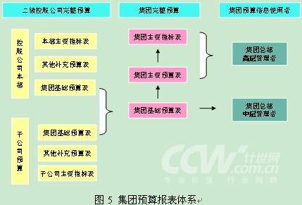 预算制定是全面预算管理的关键部分,包括设立目标、制定运营计划和编制预算三项活动。三者间存在相互依存,相互影响的关系,有时需经过多次反复循环。图5反映了各子公司与集团预算报表体系的关系。