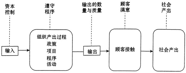 穆尔指出在公共价值系统中的过程评估与结果评估应用的必要性,“过程评估是必要的,第一,除了创造期望结果方面的工具性价值,某些过程的特性在公共部门中是有价值的;第二,如果目标是随着时间的推移对绩效加以改进,就需要获取那些关于机构做了什么及其产出的结果的信息(Mark H.Moore,2013)”。穆尔提出沿着价值链来测量并评估绩效(见图1),所谓公共价值链,是指公共资产通过一系列的政策、项目或者活动转换为具有公共性的价值结果。沿着公共价值链进行测量的这个框架纠正了公共部门专注结果评估,忽视过程评估的现象,如果没有过程评估,公共部门就不能探索出产出方法得以了解通过创新能够增加什么工作并提高生产力。