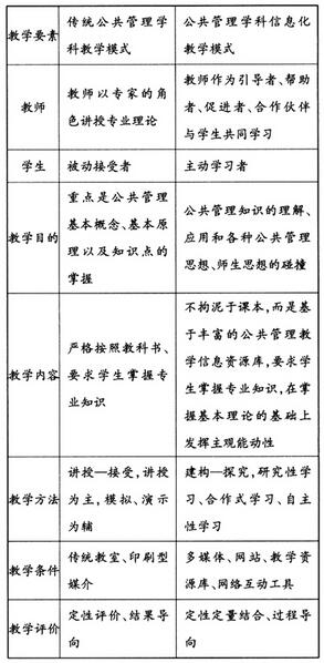 表1 传统的公管教学模式与公共管理学科信息化教学模式比较一览表